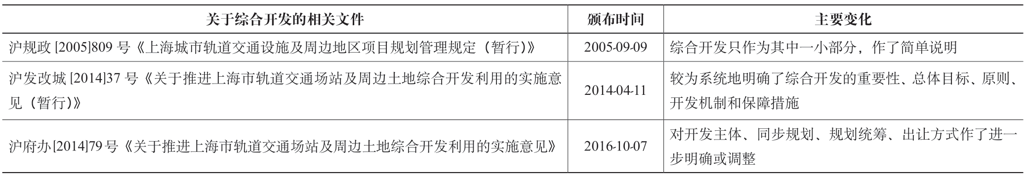 表1 上海市轨道综合开发政策文件的制定和指引深化
