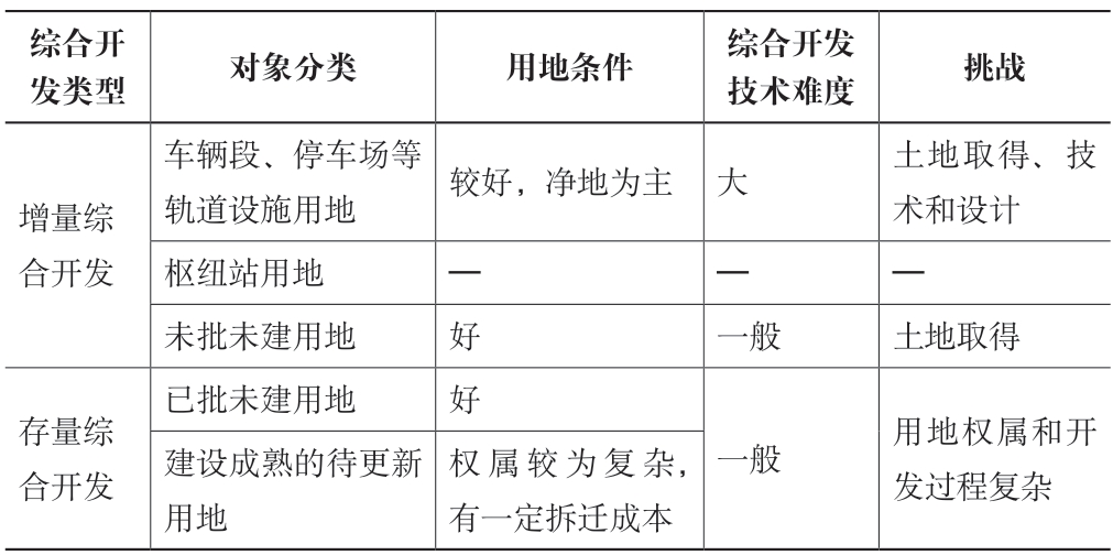 以往,通常习惯按物业开发用地与轨道站点的位置关系,将综合开发分为上盖开发和沿线用地开发两大类[21],且通常借鉴香港和东京的做法[11-13]。但从国内综合开发面临的相应制度困境和发展实情来看,上述分类方式无益于实际的综合开发操作。随着快速城市化下土地的急剧消耗,增量开发与存量改造并重的时代已经到来。鉴于两类开发在TOD 综合开发中存在各自不同的挑战,因此将发展潜力分为增量开发和存量开发两类进行探讨。