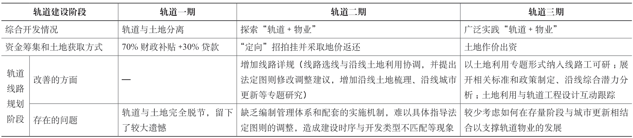 表2 深圳市轨道交通一、二、三期中轨道与土地一体化规划发展变革