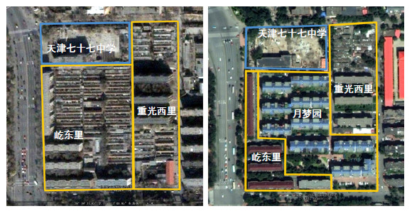 图 3 城市更新中产生的居住隔离(原本融合的两个小区分别拆除部分房屋建成门禁小区,新建部分阻断了三者间的联系,形成了“毗邻隔离”) 资料来源:作者绘制 |