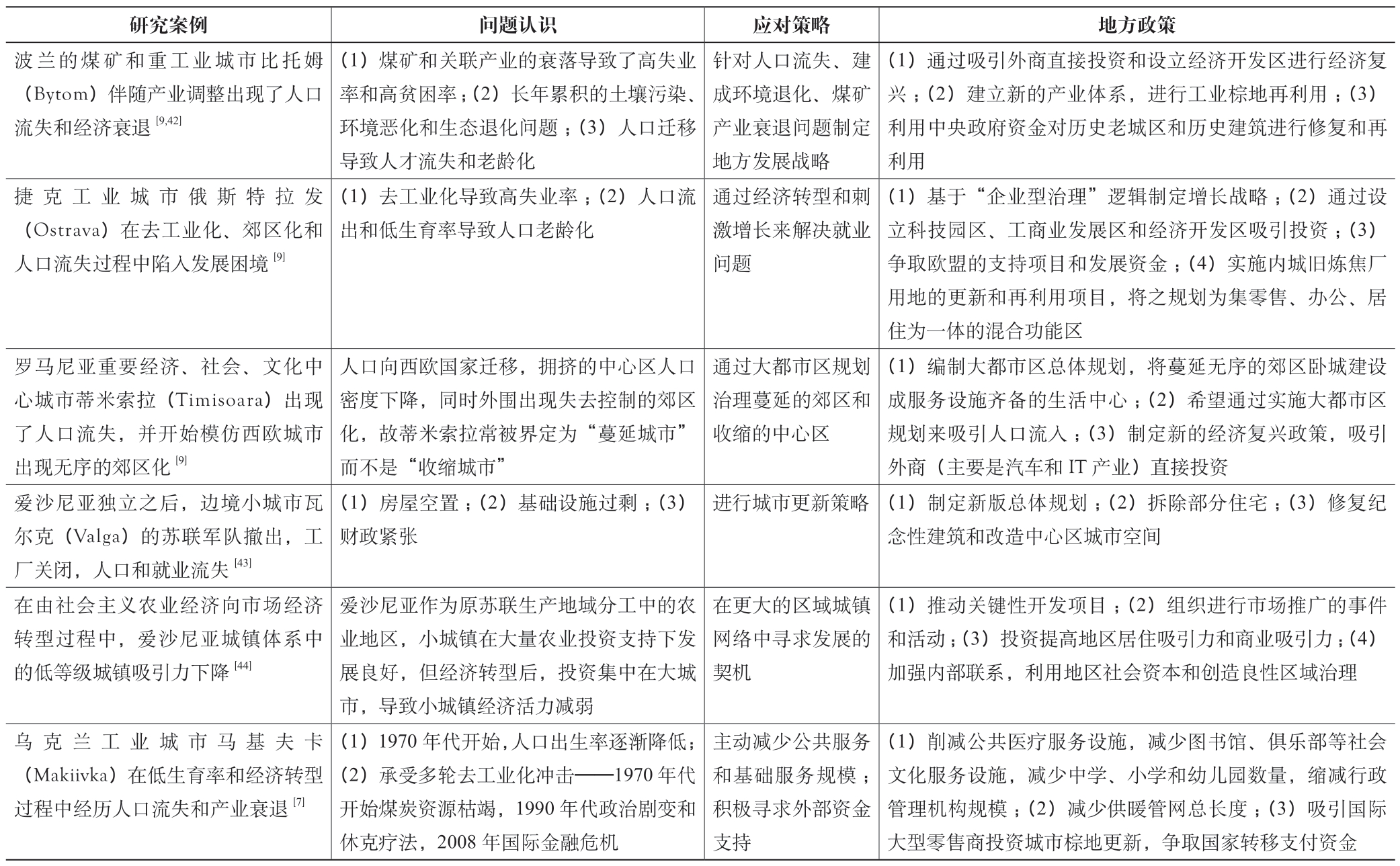 表1 部分中东欧前社会主义国家收缩城市案例和收缩应对总结