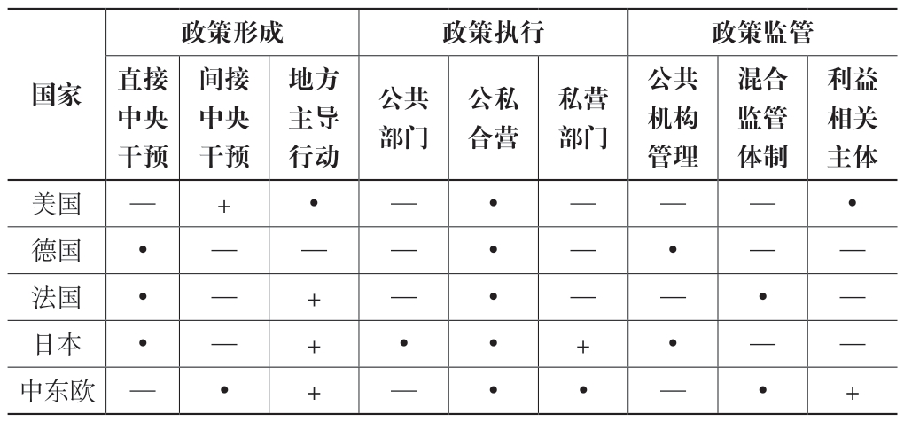 斯泰潘和穆勒(Stepan &Muller)将福利治理分解为三个维度:(1)政策形成,即决策过程中中央政府与地方政府的角色关系和权责界定;(2)政策执行,即公共政策由公共部门、私营部门或其联合体执行;(3)政策监督,即国家、区域、地方或利益相关主体对实施过程和最终绩效进行监督和评估[47]。基于此,可以将前述各国收缩治理模式归纳为:(1)以美国为代表的地方治理,即最小化国家干预,主张地方主导和社区规划,通过公私合营机构整合利益相关主体资源(包括NGO、社区组织、本地企业、地方政府等);(2)以西德、法国、日本为代表的中央治理,即在国家政府层面制定引导政策,协调资本、政府、组织、市民行动,进行城市可持续更新;(3)以中东欧(包括东德)为代表的转型治理,即地方主导政策的形成和执行,但是资金或政策资源主要来源于中央政府(表2)。