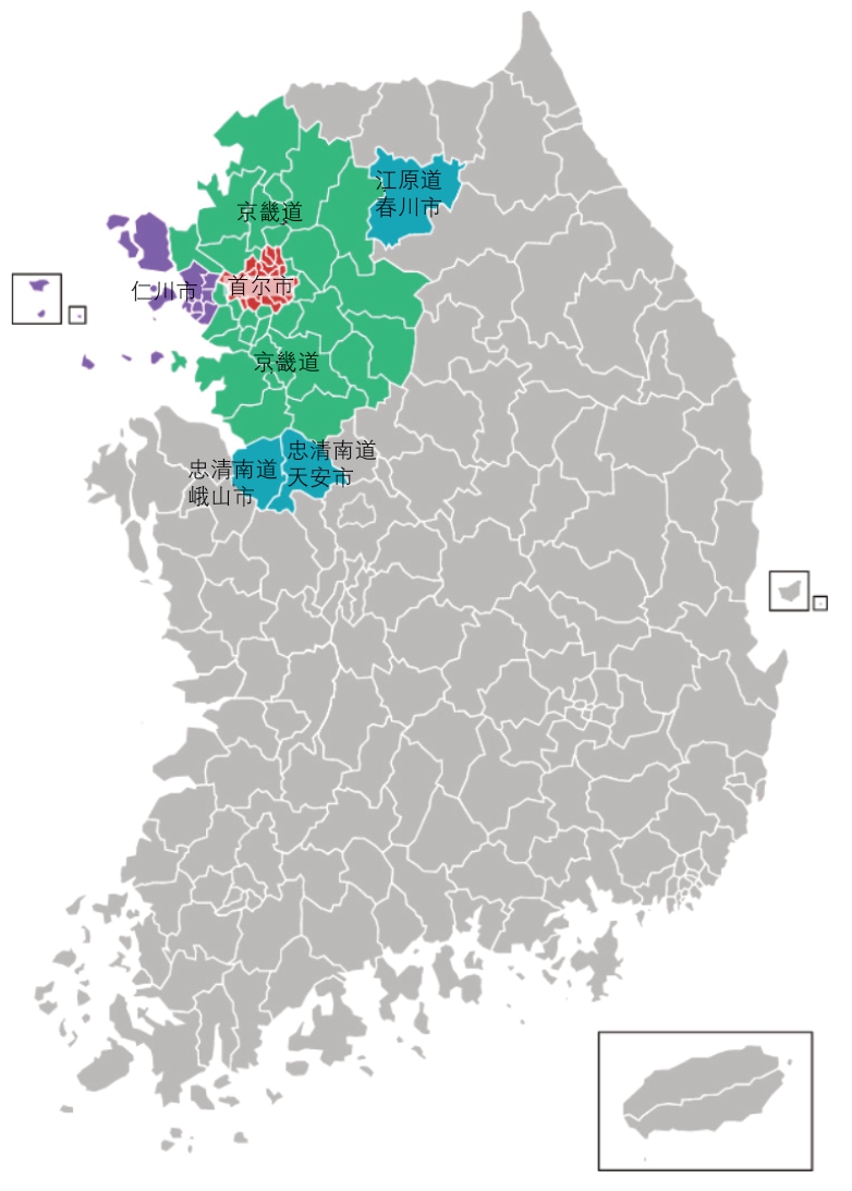 资料来源:作者根据https://en.wikipedia.org/wiki/Seoul_Capital_Area#/media/File:Sudogwon.svg 绘制