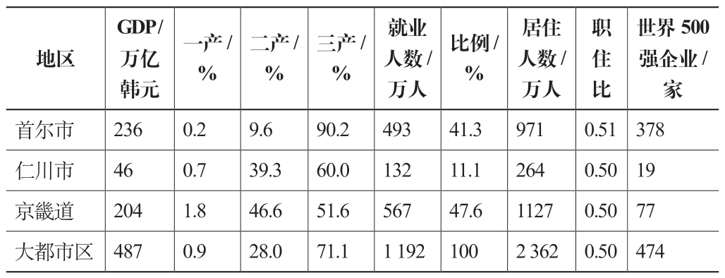 表2 首尔大都市区主要经济与就业指标(2009 年)