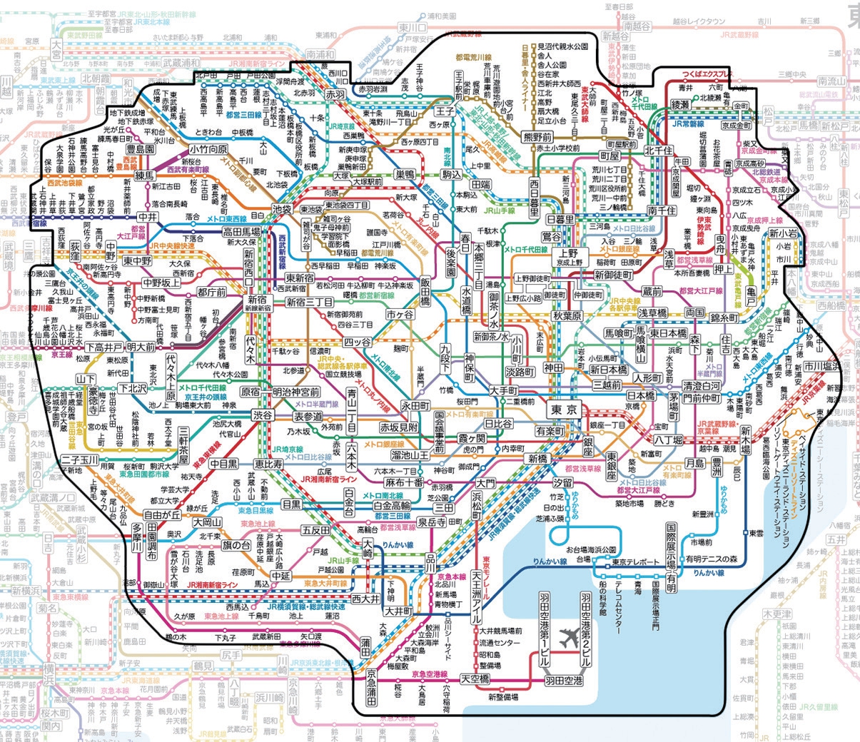 图2 东京23 区轨道交通线路地图(含JR、地铁、私铁)