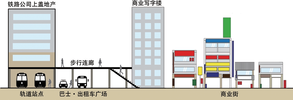 五是完善公私合营的开发机制。中国大城市的轨道交通站点和商业设施的一体化开发面临制度和空间的双重阻碍:制度上地铁建设和土地开发形成两套分离的系统;空间上地铁建设滞后于市中心的土地开发,导致轨道交通用地局促,再加上旧城保护的要求和城市更新中产权回收的困难,使得轨道交通站点在市中心进行系统化商业开发的难度进一步增加。中国大城市可逐渐完善公私合营的运行模式,如将站点的土地开发权一并出让给轨道建设公司从而促进一体化开发,委托其解决前期产权并购和征地赔偿问题,并给予一定容积率奖励。