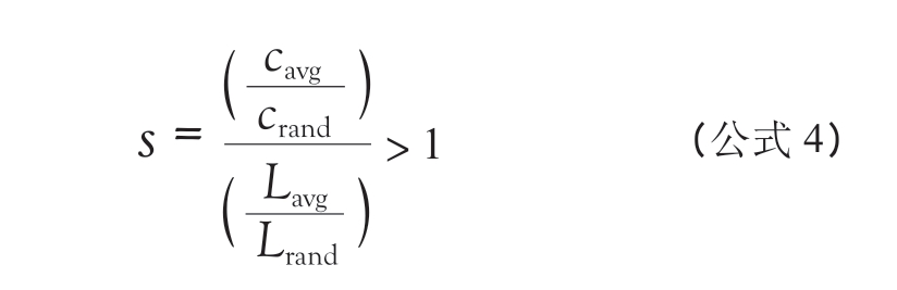 汉弗莱斯和格尼(Humphries & Gurney)给出了小世界网络指数s 的一般判断标准[35],即该网络的平均路径长度Lavg 和聚集系数Cavg 需满足以下条件: