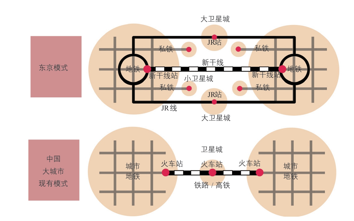图16 东京和中国大城市对比:轨道交通与城市开发的关系模式