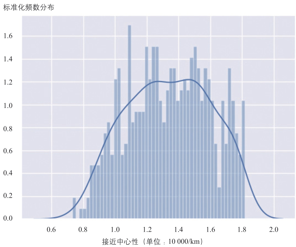图9 东京轨道交通站点接近中心性标准化频数分布
