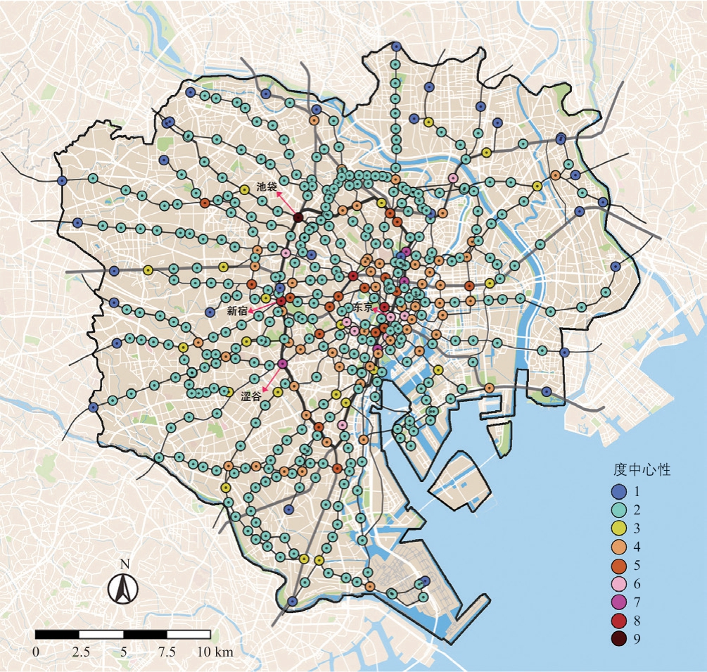 图5 东京轨道交通站点度中心性空间分布
