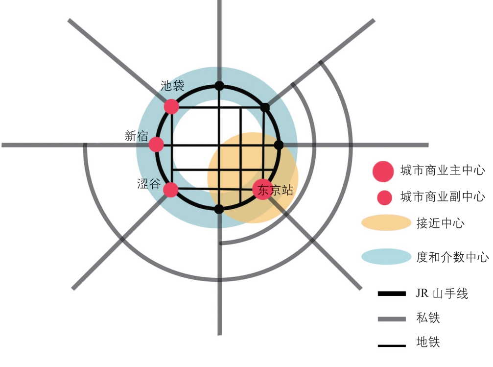 图10 东京商业中心和交通中心的关系模式图