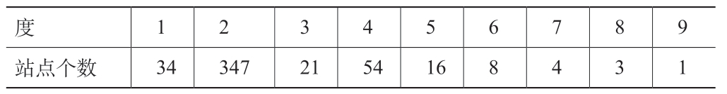 表2 东京轨道交通站点的度分布