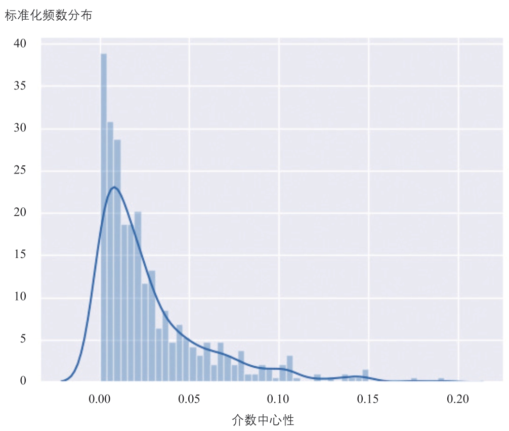 图7 东京轨道交通站点介数中心性标准化频数分布