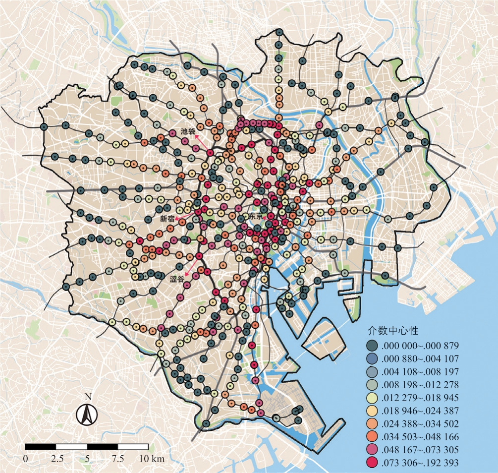 图6 东京轨道交通站点介数中心性空间分布