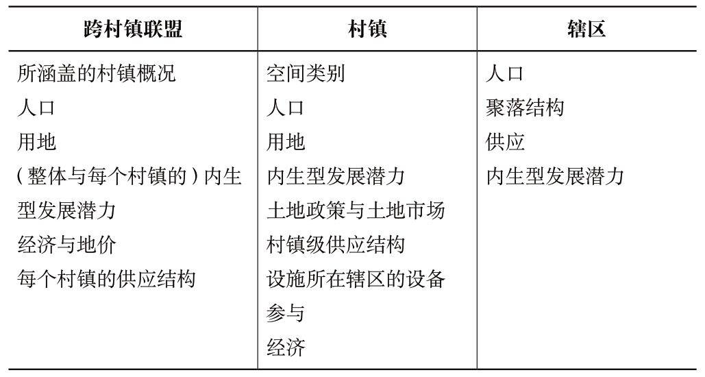 随着功能联系延伸到城区以外,跨越村镇行政边界的合作越来越重要,因此将区域层级的合作纳入评价也是有意义的。因此,村镇活力测评指南规定其可以针对三个不同的空间层级进行评价,即村镇中的某一个辖区、村镇作为整体以及跨行政边界的村镇联盟区域合作[13]。