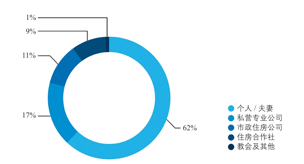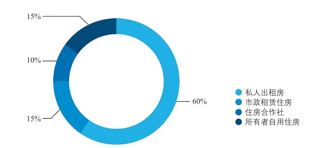 住房合作社是德国租赁住房市场的重要组成部分,接受政府支持并受法律与章程保护,成为市民以低成本获得稳定生活的重要选择。据统计,德国每年合作建房在所有新建租赁住宅中占比超过30%,是德国租赁住宅建设的主要组织形式之一[14]。