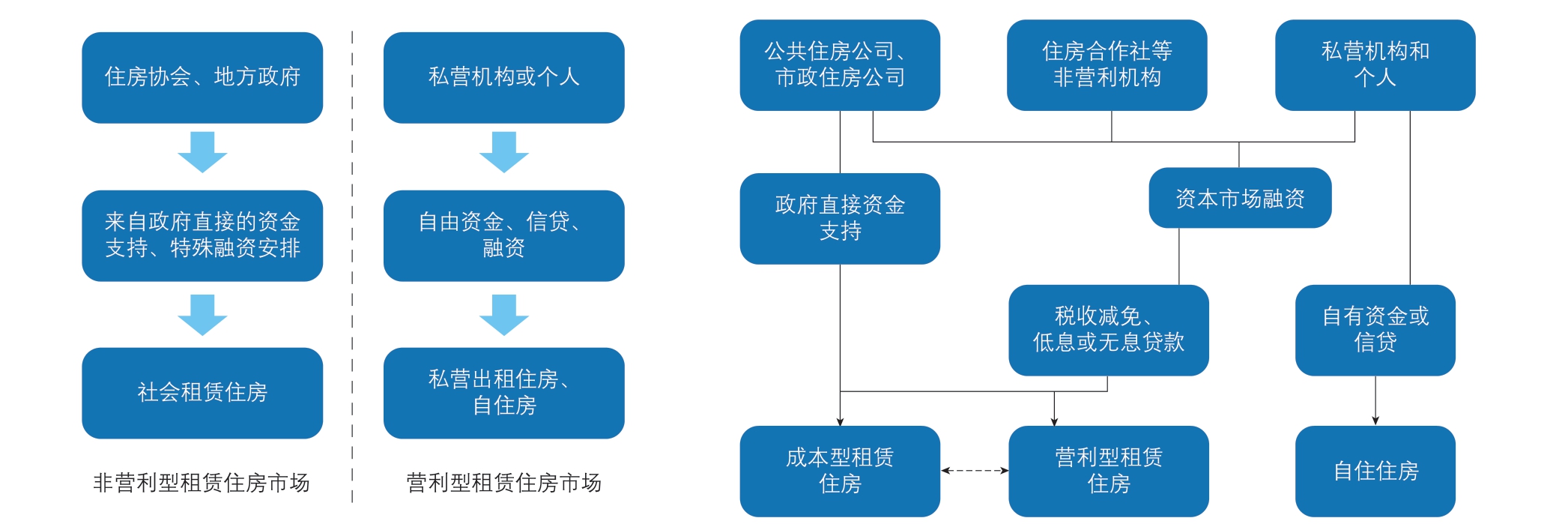 图1 “ 二元化”租赁住房供应体系(左)与“单一制”租赁住房供应体系(右)