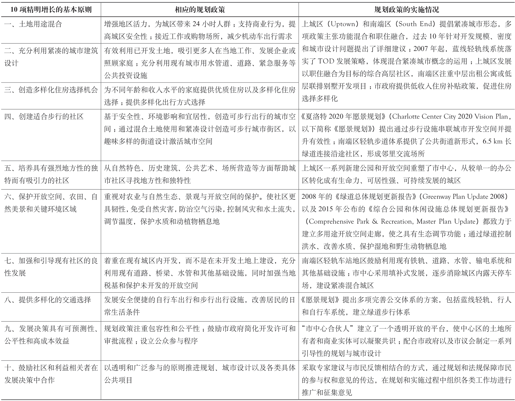 表1 精明增长理念引导下的夏洛特规划政策实施情况