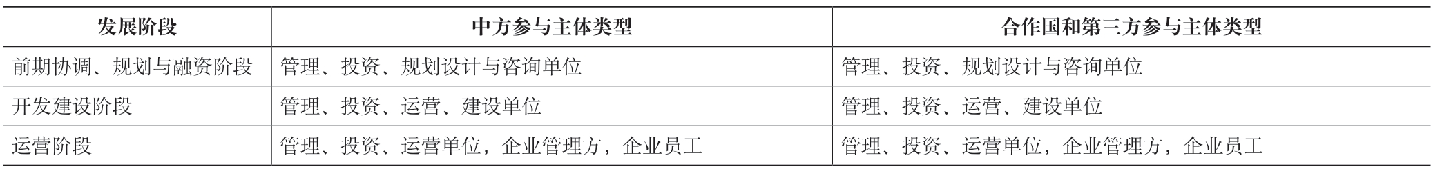 表1 中国境外产业园区不同发展阶段各方参与主体类型分析