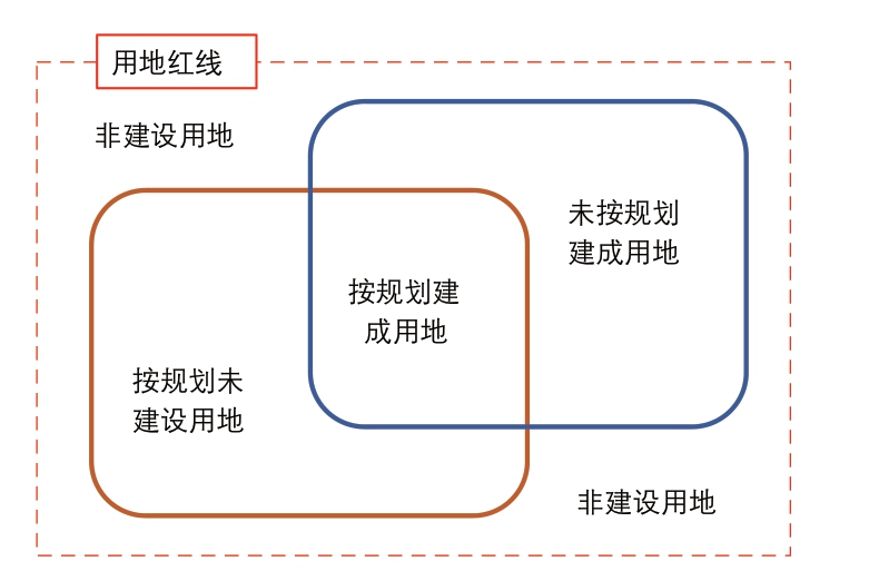 从规划实施的视角来分析,境外产业园区用地红线范围内的用地分为建设用地、非建设用地,其中建设用地可分为按规划建成用地、按规划未建设用地和未按规划建成用地(图3)。