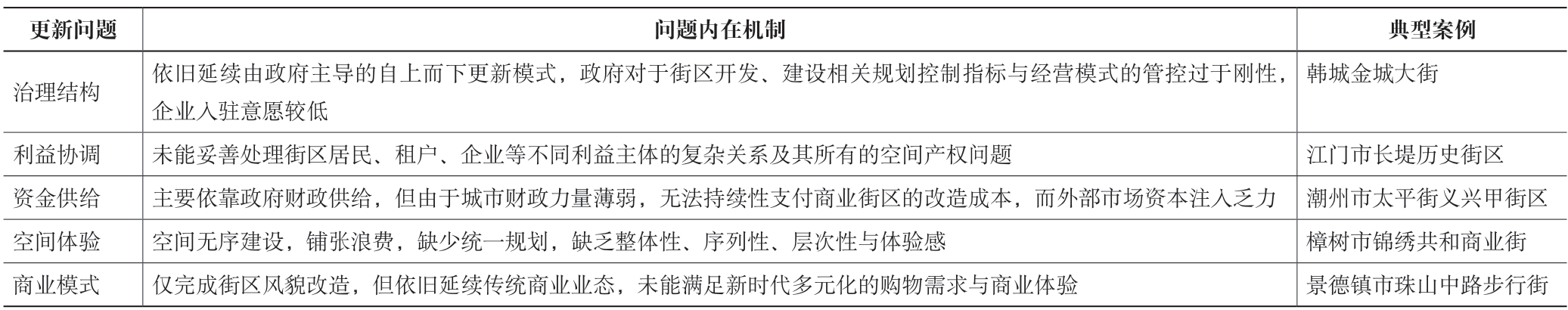 表5 我国中小城市商业街区既有更新困境梳理