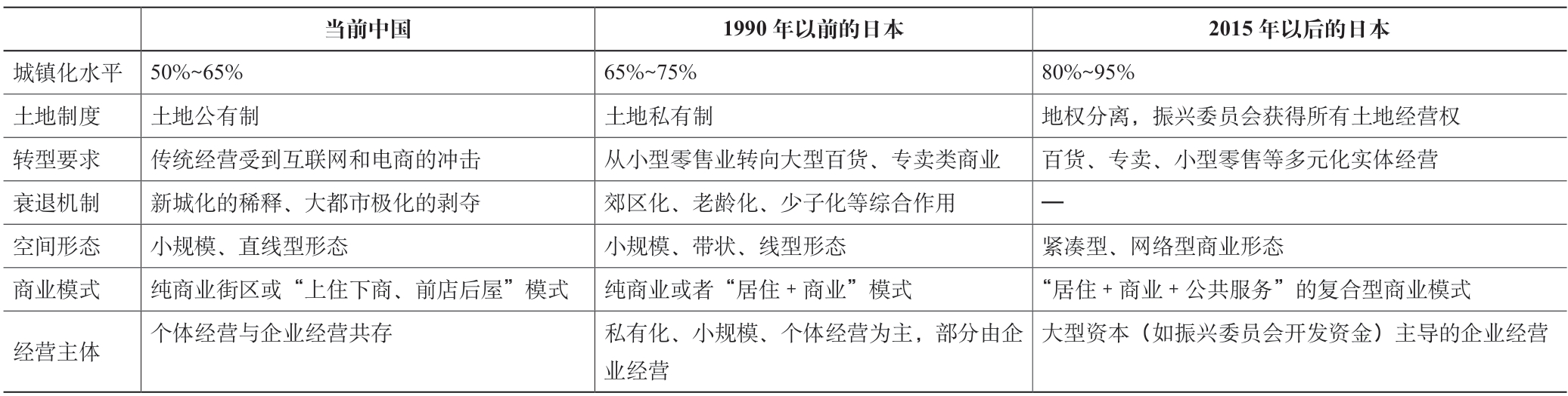 表6 中日两国中小城市商业街区发展比较