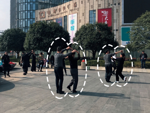 图8 长沙市民在街头广场跳舞,两个舞者的个人空间相接合